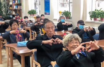 在互动环节,心理解压专家带老年人练习健康手指操,通过加强手部运动,增强血液循环,达到醒脑健脑的效果。